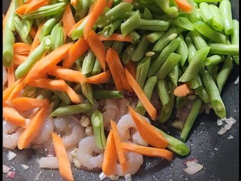 COOKING FRENCH BEANS CARROT WITH PRAWN RECIPE #shorts #Prawn #green beans #carrot #setegry vlog
