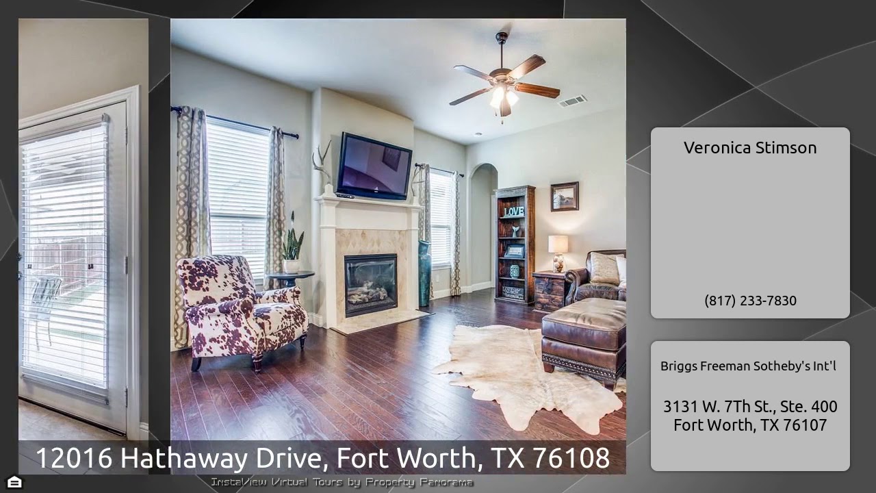 The Virtual Tour for the property at 12016 Hathaway Drive, Fort Worth, TX 76108 listed for $326,000: Other homes for sale by Veronica Stimson of Briggs Freeman Sotheby's Int'l: Adorable Craftsman style home with charming curb appeal and character. Move-in ready, no wait for builder to finish! Great open layout with lots of natural light. Master suite downstairs, three large bedrooms with walk in closets and big living area upstairs. Office has French doors, formal dining is used as an additional entertainment area, upgraded kitchen has gas cooktop, stained cabinets, huge breakfast bar, eat- …