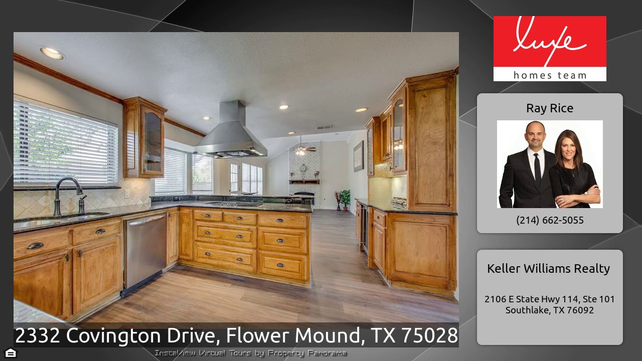 The Virtual Tour for the property at 2332 Covington Drive, Flower Mound, TX 75028 listed for $350,000: Other homes for sale by Ray Rice of Keller Williams Realty: LIGHT & BRIGHT w. BEAUTIFUL UPDATES*Extensive hard-surface flooring*Crown molding & 2in blinds*Updated Kitchen w.granite, SS appliances, stone backsplash, custom cabinets & a wine cooler & wine storage unit *Family Room. w Fire place Combo Formals w.wood floors*French doors to Master w.vaulted ceilings & plantation shutters*Master Bath w.dual sinks, jetted tub & walk-in*Granite in 2nd Bath*Lg Backyard w.wood deck & storage …