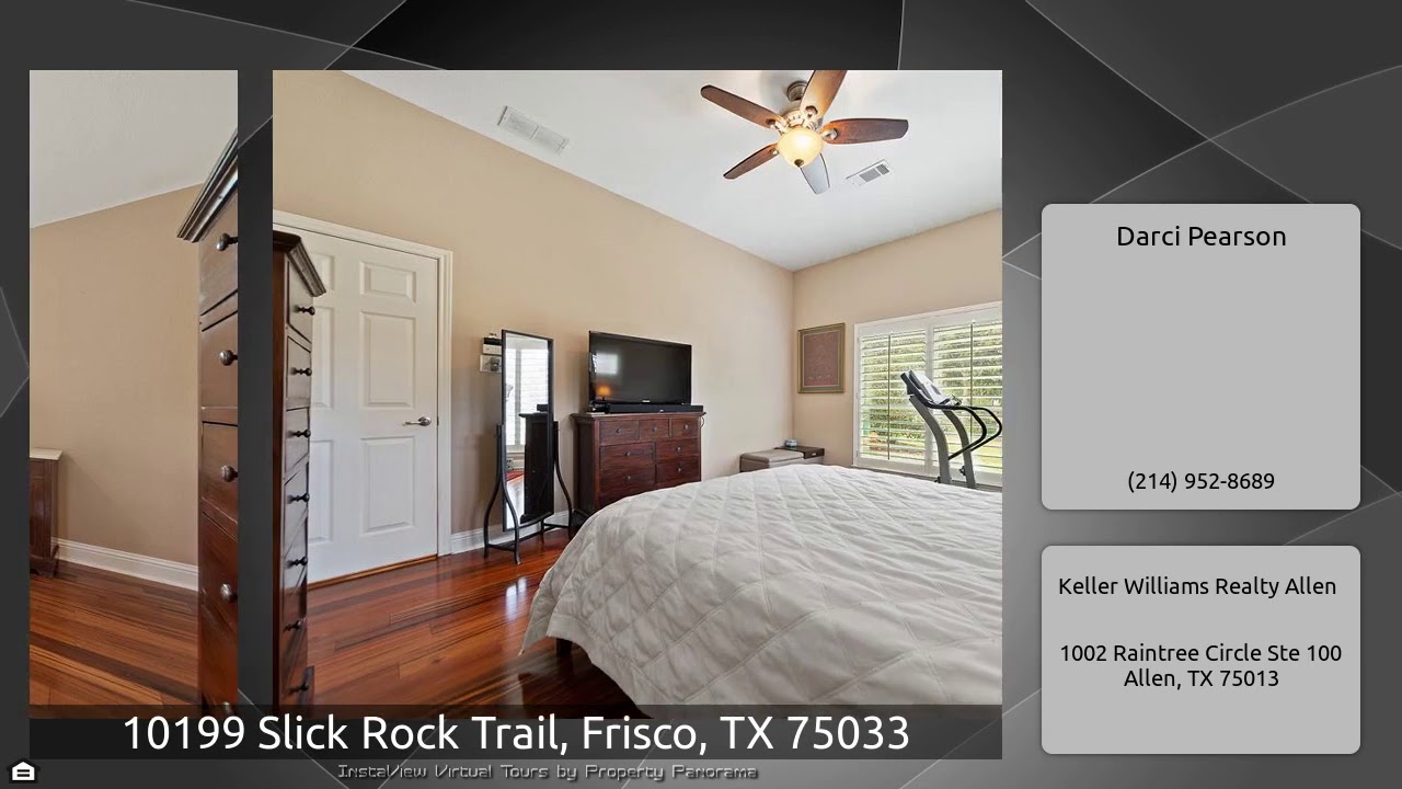 The Virtual Tour for the property at 10199 Slick Rock Trail, Frisco, TX 75033 listed for $369,000: Other homes for sale by Darci Pearson of Keller Williams Realty Allen: Single story home, on a .25 acre pie-shaped lot located in the desirable community of The Trails in West Frisco. Flexible floor-plan including 3 bedrooms, 2.5 baths, living and dining + 2 flex rooms with french doors that could be an office-study, workout room, nursery, craft room, etc. Separate dining & a spacious eat in kitchen with breakfast bar. Backyard entertaining will be magnificent year round with this heated …