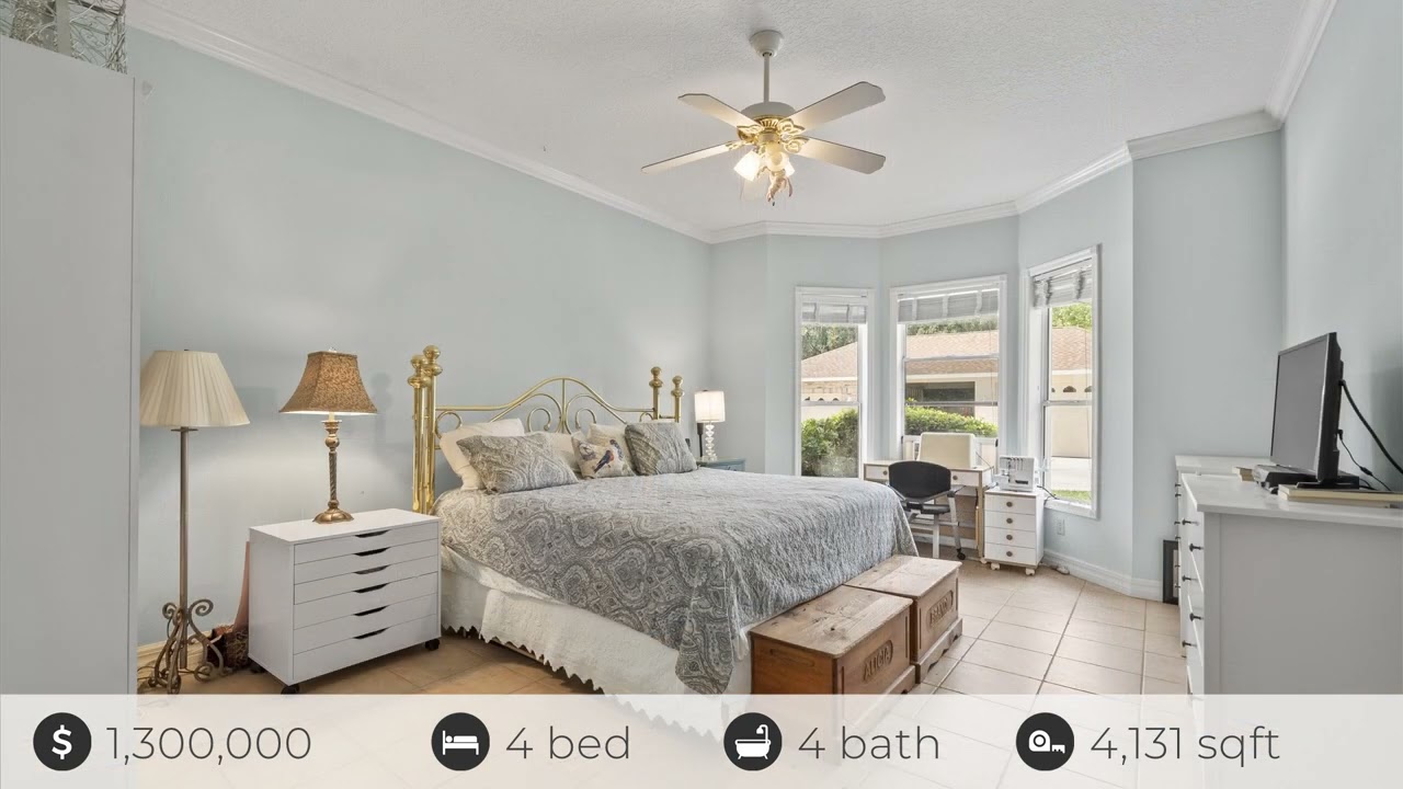 See the Property Website! :: Scott Kennedy – 813-961-4449 :: We are pleased to present this BEAUTIFUL, CUSTOM BUILT HOME located in the GATED COMMUNITY of Eagle Crest! Situated on over 1.5 ACRES with GORGEOUS WATER AND CONSERVATION VIEWS, this 4 bedroom (4th bedroom can be used as a BONUS ROOM), OFFICE, 4 bath home with 4,131 sq. ft. of incredible living space features: a light and bright, open floor plan with volume ceilings and neutral d cor; double leaded glass front entry doors; architectural niches; GAS FIREPLACE; French doors; PLANTATION SHUTTERS; coffered ceilings; CROWN MOLDING; gourmet kitchen with center island and large pantry; central vac; insulated windows; spectacular views from practically every room in the house; NEW ROOF (2021); enormous pavered lanai; 3 CAR SIDE ENTRY GARAGE PLUS 3 CAR DETACHED GARAGE; mature landscape and trees; IMMACULATE CONDITION and more! Add to these a CONVENIENT LOCATION for schools, shopping (new Publix minutes away), dining and interstate travel, and you have a fantastic place to call home!