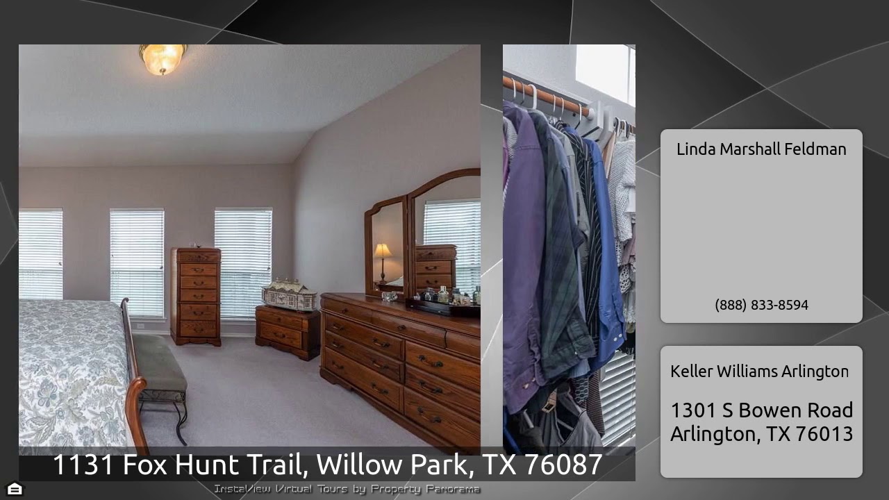 The Virtual Tour for the property at 1131 Fox Hunt Trail, Willow Park, TX 76087 listed for $319,000: Other homes for sale by Linda Marshall Feldman of Keller Williams Arlington: PRICE REDUCED! ALEDO SCHOOLS! This charming home offers many features for the family to enjoy. Spacious floor plan with open kitchen, living and formal dining area make this house great for entertaining. Beautiful wood floors located throughout central living areas. Kitchen offers eat-in dining area, lots of cabinets and countertops for storage, island. 3rd bedroom area can be used as an office or BR with french …