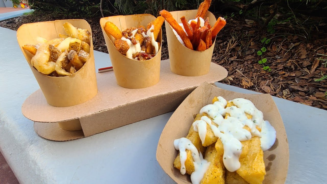 It’s time to FINALLY try the fry flight over at the EPCOT International Food & Wine Festival! This new menu item comes to us from an all new booth this year called “Fry Basket”. We’ll save our reviews for later, but until then. . . . come along with us for this fun filled adventure over in EPCOT.