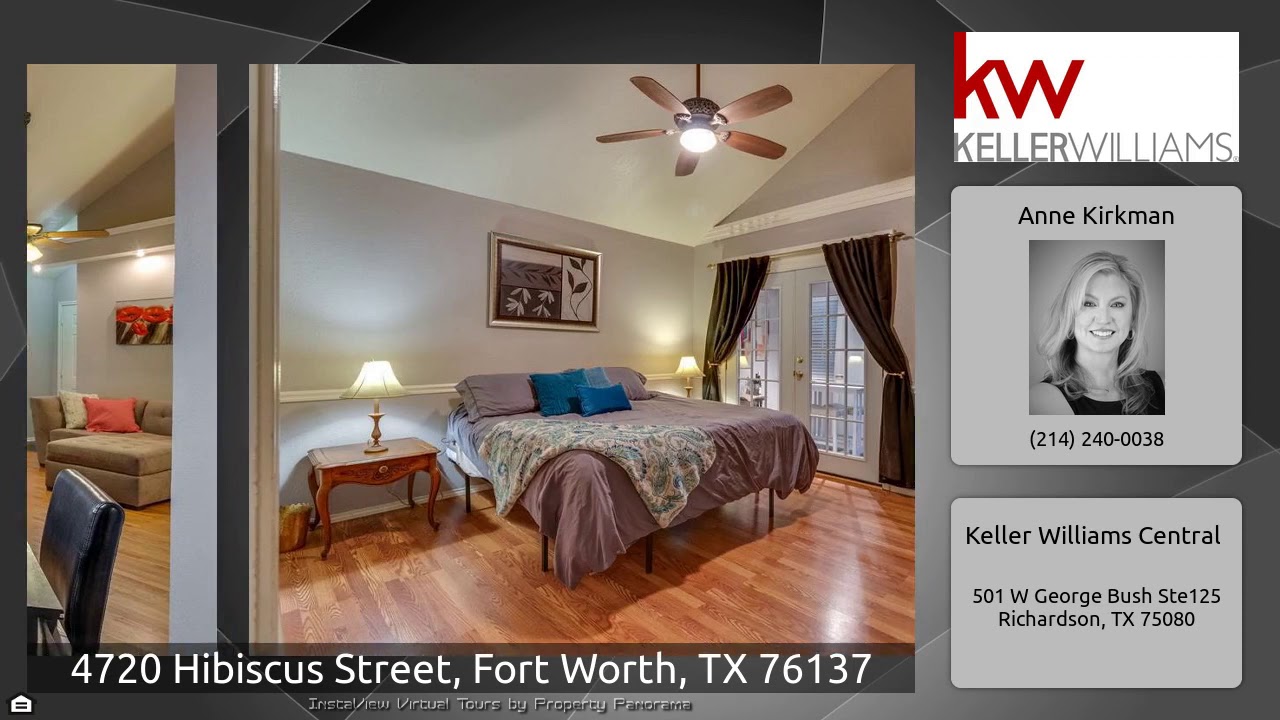 The Virtual Tour for the property at 4720 Hibiscus Street, Fort Worth, TX 76137 listed for $198,500: Other homes for sale by Anne Kirkman of Keller Williams Central: Unique and versatile floor plan! New Roof! Updated 3 bed two bath with over 700 square ft. of Garage space, comprised of attached over sized 1 car, AND detached over sized 2 car use as work shop, home gym, office. Kitchen with beautiful oak cabinets and granite counters, adjoining bonus room with distinctive wrought iron gates, could be a wine vault, dining area, yoga studio. Spacious living area with vaulted ceilings, french …