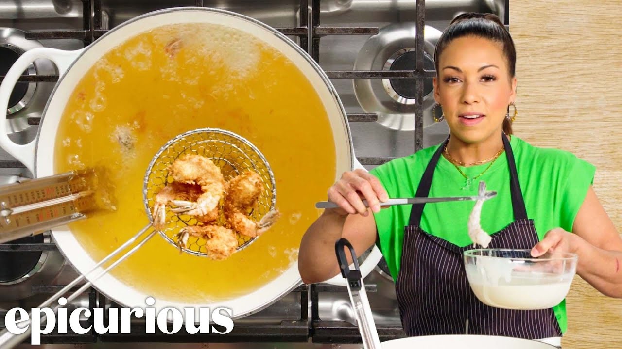 Professional chef Adrienne Cheatham demonstrates everything you need to know in order to get fully-cooked, crispy results when deep frying. From the right type of equipment to the right types of oil, Adrienne goes step-by-step, breaking down how to deep fry just about anything at home.