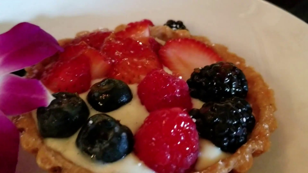 food tart and pear sponge cake with cream and berries 2018AngelesAtLACuisineDiningFranceFrenchfrench cuisineFrench diningHSKYHskyArtjulienneLosMarinorestaurantSanVideoVlogYouTube