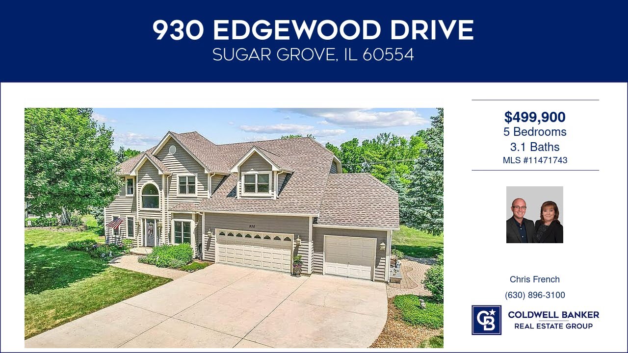 930 Edgewood Drive Sugar Grove Illinois Homes for Sale | www.coldwellhomes.com | Chris French with Coldwell Banker Real Estate Group | See full property details at | Welcome Home To This 5 Bedroom 3.5 Bath Beauty Nestled In A Quiet Cul De Sac In Black Walnut Subdivision…Home Features Gourmet Kitchen, New SS Appliances ,Granite, Updated Lighting..Cozy Family Room With Fireplace ..Formal Dining Room Has Tray Ceilings.. Formal Living Room Or Den You Choose ! Large Primary Suite Features Cedar Lined WIC, Bath With Dbl Sinks Walk In Shower And Heated Floors.. 4 Large Bedrooms And Laundry Complete The 2nd Level…Finished Basement Has Theater Room Complete With Large Screen & Surround Sound… Wet Bar Area.. Family Or Game Room , Full Bath And Sauna! If That Is Not Enough Wait Till You Walk Outside To Your Secluded Oasis, Enjoy Your Summer On The 36×20 Deck With Two Gazebos Gas Grill And Pavers For Fire Pit… 3 Car Garage ..Reverse Osmosis ..Whole House Filter System ..New Appliances ..Hot Water Heater.. Water Softener