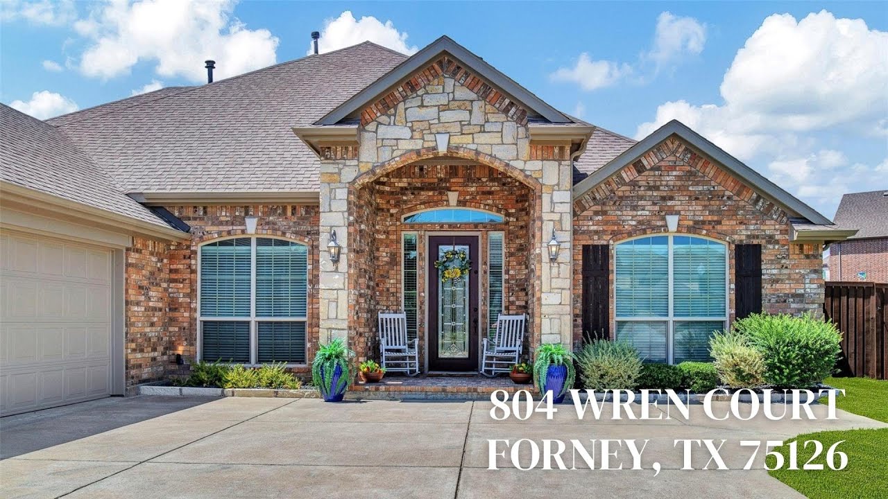 Sought-after floorplan on cul-de-sac in wonderful Grayhawk community! .325 of an Acre. 4 Bedrooms including the primary suite are on the first floor. 2.5 bathrooms downstairs, 1 upstairs. Primary retreat is ensuite with lg. walk-in closet, sitting area, private access to covered patio. Huge private flex space upstairs with full bath & walk-in closet. Could be mother-in-law, guest, media, game room. Also down – Large study w French doors, Formal Dining (could be another living area). Hardwoods in entry, formal dining and family room. Kitchen has lg. dining area, granite, butler’s pantry, SS appliances, gas cooktop, new garbage disposal, large island w storage. French doors to lg. covered patio. Family room open to kitchen w stone gas log fireplace, wall of windows. 3 car side-entry garage. Tankless hot water heater. Home has been meticulously maintained. Community pool and playground. Close to shopping, restaurants, and historic downtown Forney!