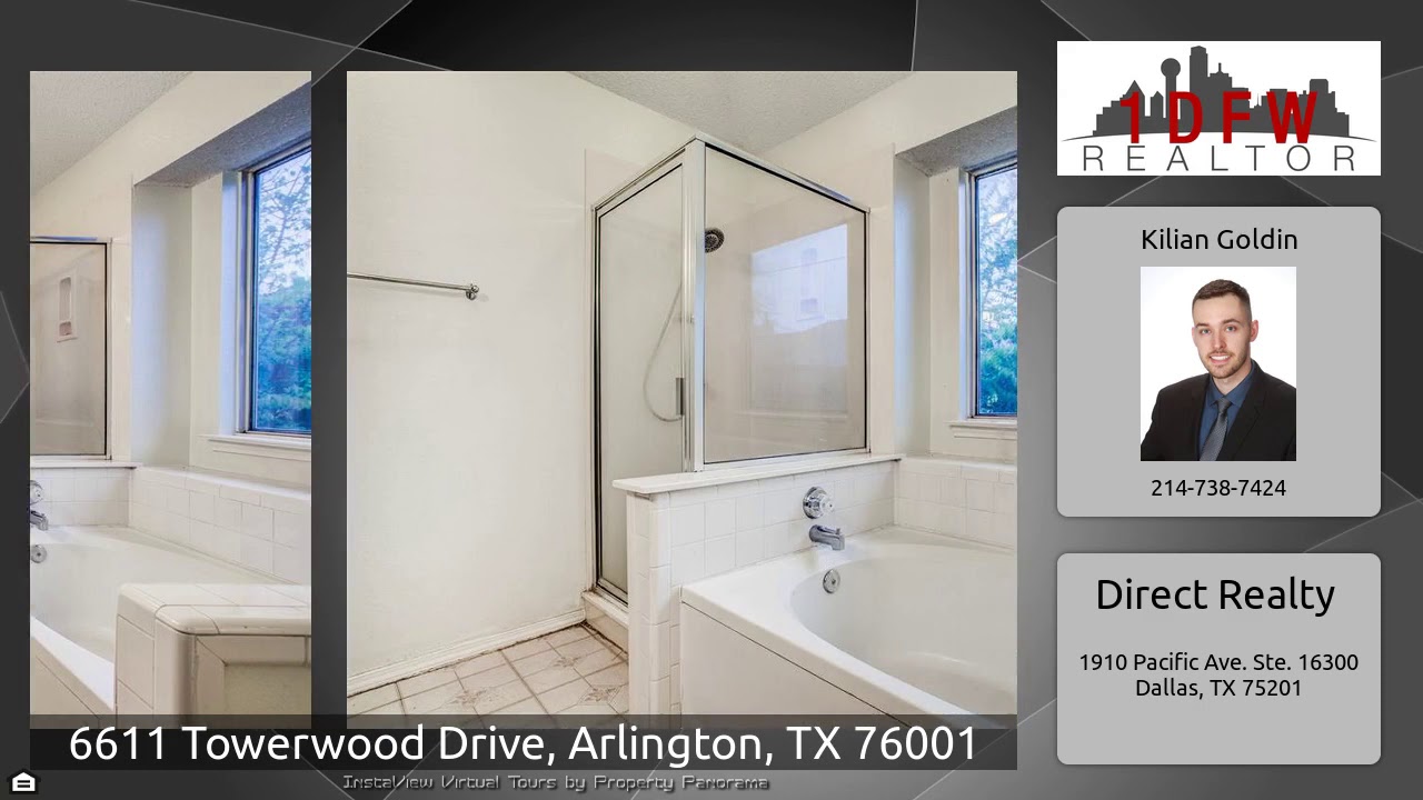 The Virtual Tour for the property at 6611 Towerwood Drive, Arlington, TX 76001 listed for $1,700: Other homes for sale by Kilian Goldin of Direct Realty: A wonderful open floorplan featuring 2 living and 2 dining areas, a study or den with French doors, and a large family room with brick wood burning fireplace that opens to the kitchen, which has new granite counter tops & sink. Split bedrooms. Master bedroom has new granite counters, 2 sinks, garden tub and shower. Covered patio. Swing front garage. Established neighborhood with trees. Close to city conveniences, park, with easy access to …