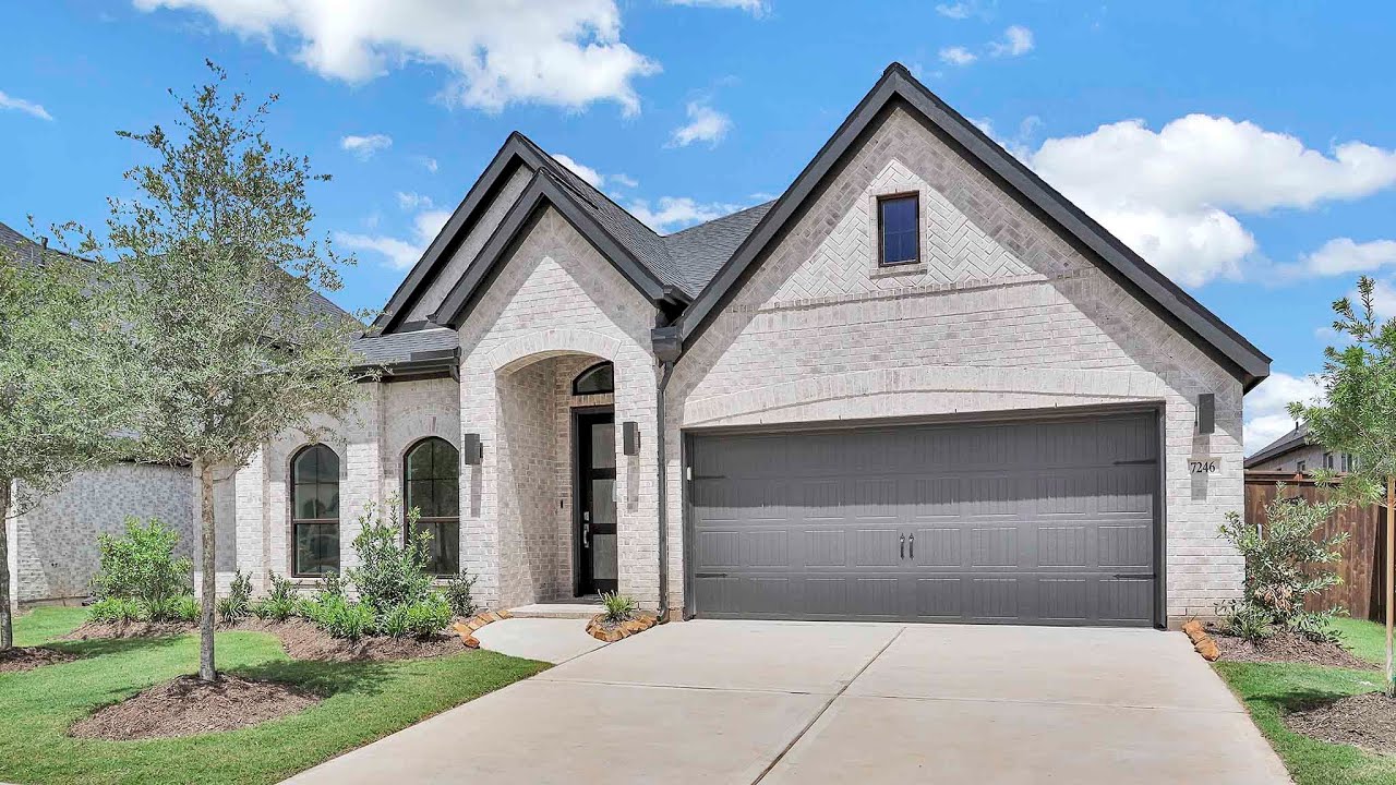 Cane Island, in Katy, TX, offers luxurious resort-style amenities and family fun. This 2949 sq ft plan offers four bedrooms and three full bathrooms. Home office with French doors set at entry with 12-foot ceiling. Formal dining room and game room with French doors off extended entry with coffered ceiling. Spacious family room with wall of windows opens to kitchen and morning area. Kitchen offers large walk-in pantry and generous island with built-in seating space. Private primary suite. Dual vanity, garden tub, separate glass-enclosed shower and two walk-in closets in primary bath. Guest suite includes full bath. All bedrooms include walk-in closets. Mud room off two-car garage. #perryhomes