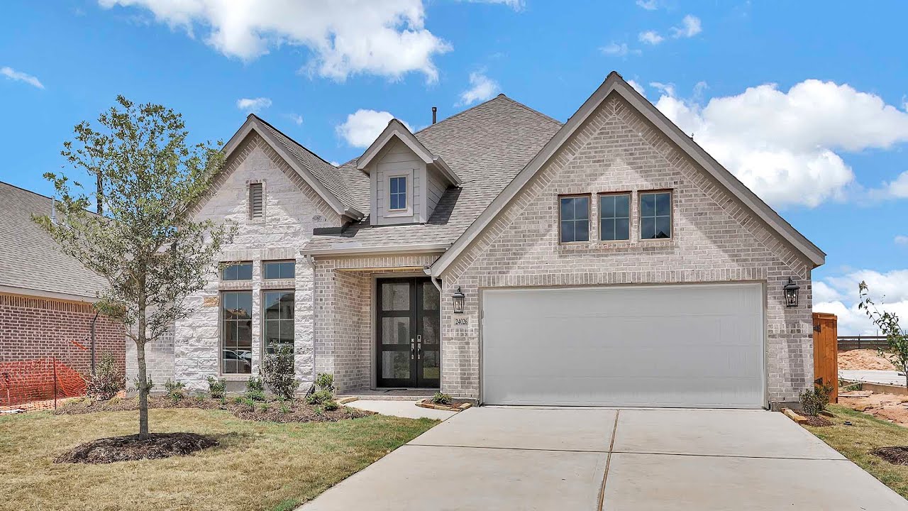 Katy, TX is one of the most desirable areas to live in Houston. Elyson is a master-planned community located in Katy that offers stunning new homes for sale, including many move-in ready homes. This 2738 sq ft plan offers four bedrooms and three full bathrooms. Home office with French doors set at double door entry with 12-foot ceiling. Game room with French doors off coffered extended entry. Spacious family room with wall of windows and a wood mantel fireplace opens to kitchen and dining area. Kitchen hosts inviting island with built-in seating space. Primary suite includes bedroom with wall of windows. Dual vanities, corner garden tub, separate glass-enclosed shower and large walk-in closet in primary bath. Secondary bedrooms, a full bath plus a guest suite complete this open one-story design. Extended covered backyard patio. Two-car garage. #perryhomes