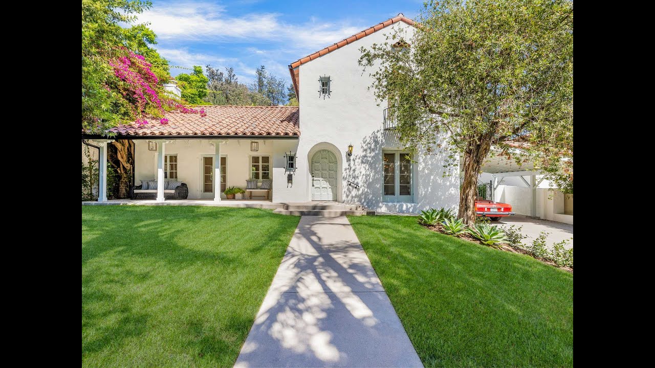 Located in the prestigious Outpost Estates, this 1920s Spanish home has undergone an exemplary restoration. The main level consists of a living room with fireplace, office, and a dining room with French doors, opening to a tranquil courtyard, and a gourmet kitchen with Thermador appliances. The second level consists of 3 bedrooms and a luxurious primary suite with a walk-in closet and balcony. The outdoor area is completed by an outdoor dining area, pool and spa, and grassy area with a fire pit.