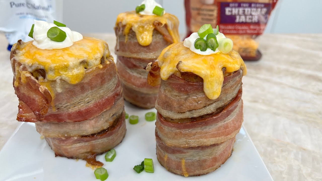 Potatoes wrapped in bacon and stuffed with goodness!Instagram:Twitter: #definitelynotgourmet #bacon #cheese #potato definitely not gourmetdictatorfoodFranceFrenchFrench GourmetFUNgourmetTotsVideoVlogvolcanoYouTube