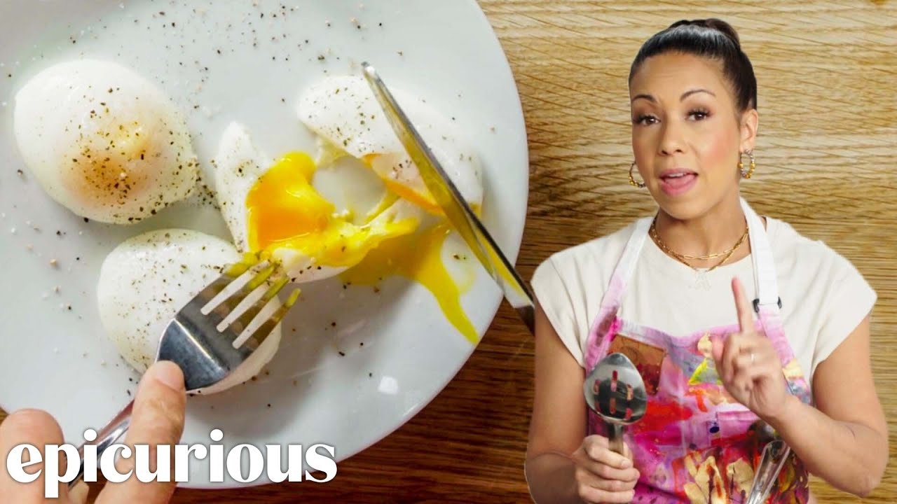Chef Adrienne Cheatham demonstrates how to perfectly poach an egg at brunch-level quality in less than five minutes.. Adrienne is here to fool-proof your poaching method with the help of one cup of vinegar.