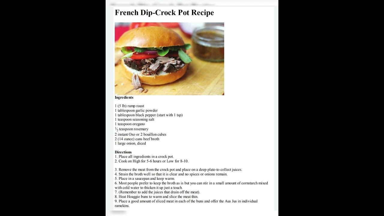 #French Dip-Crock Pot Recipe Ingre dients #food #recipe DipCrockFranceFrenchFrench recipesPotRecipeVideoVlogYouTube