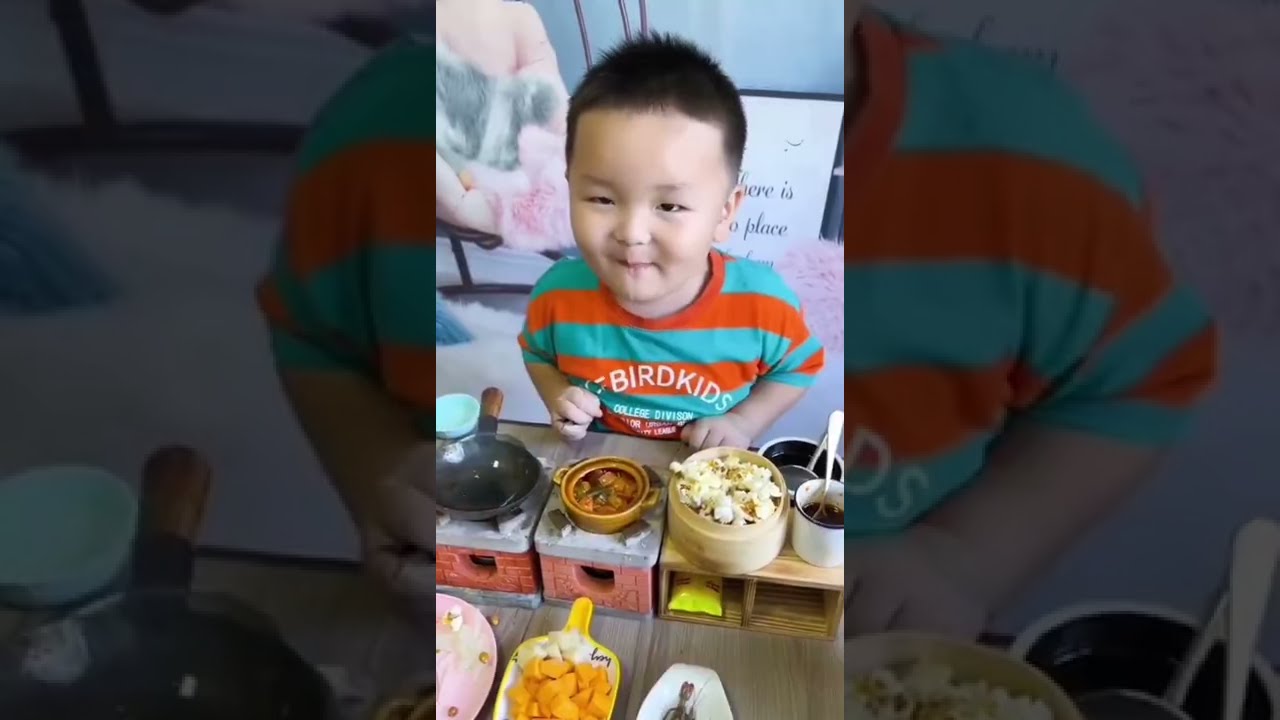 Today, the little cute chef cooks vegetables and eats popcorn, and his saliva is drooling, haha