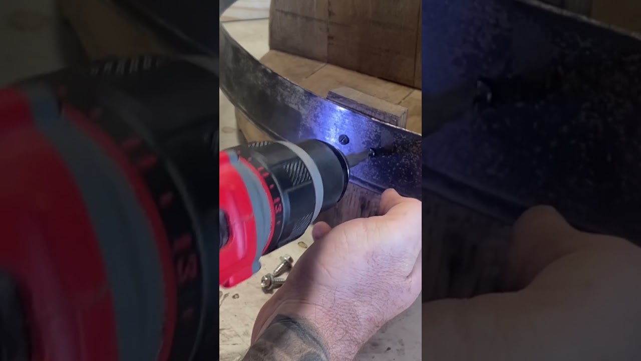 Bourbon barrel lid turned into a small bourbon shelf or book shelf. Held to the wall with a french cleat. #frenchcleat #bourbonbarrel #woodworking bourbonBuildingFranceFrenchfrench wineshelvesVideoVlogWineYouTube