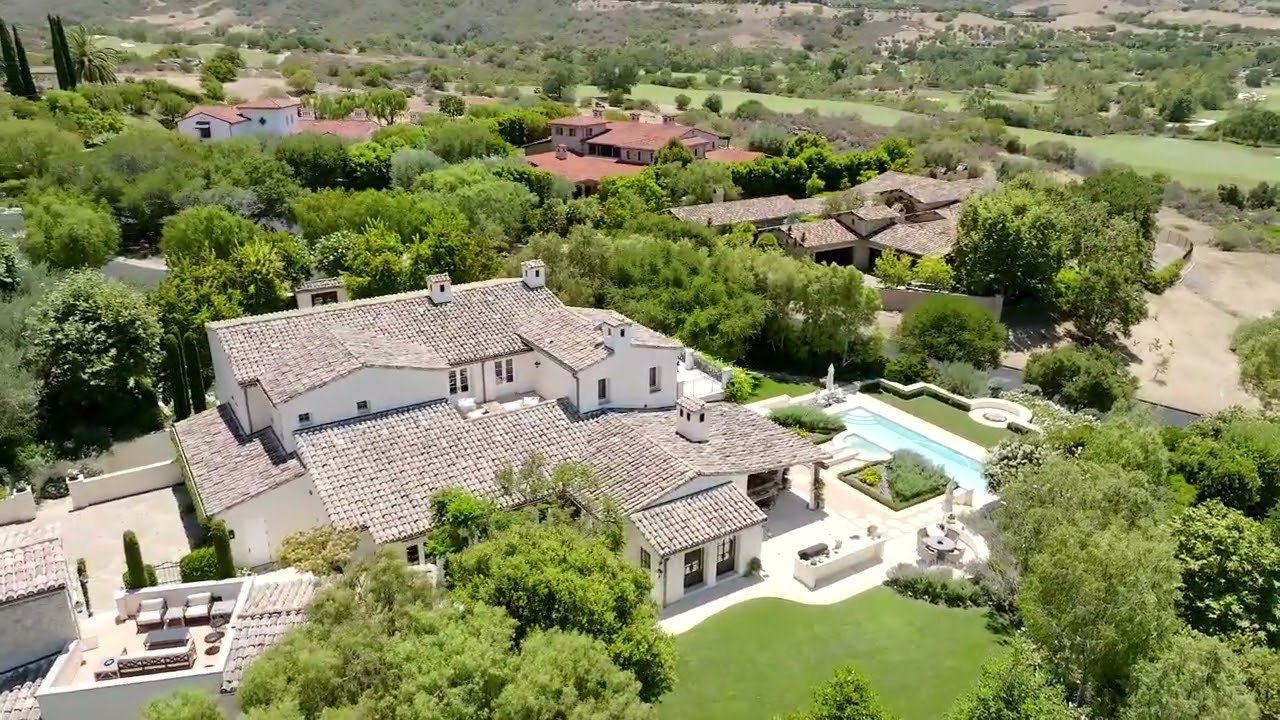 Spanning two buildings – the main residence and guesthouse – and situated on an elevated cul-de-sac, the five-bedroom home relishes in privacy and views of hillsides, golf course, and Disneyland fireworks. Featuring California living, outdoors transitions are found from nearly every room, the immaculate grounds offering pool, spa, sprawling lawns, citrus grove, view terraces, fountains, barbecue, and quaint sitting/dining areas.