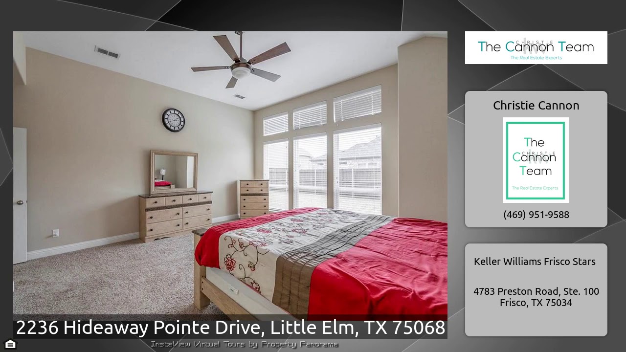 The Virtual Tour for the property at 2236 Hideaway Pointe Drive, Little Elm, TX 75068 listed for $525,000: Other homes for sale by Christie Cannon of Keller Williams Frisco Stars: Award winning FRISCO ISD! Gorgeous brick & stone exterior! Entryway boasts soaring ceilings, views of curved staircase w iron balusters & elegant formal dining. Private office with glass french doors. Chefs kitchen w designer backplash, natural light & abundant cabinet storage! Large island overlooks breakfast nook & family room for easy entertaining! Owner's retreat features spa bath w extended vanity countertop, …