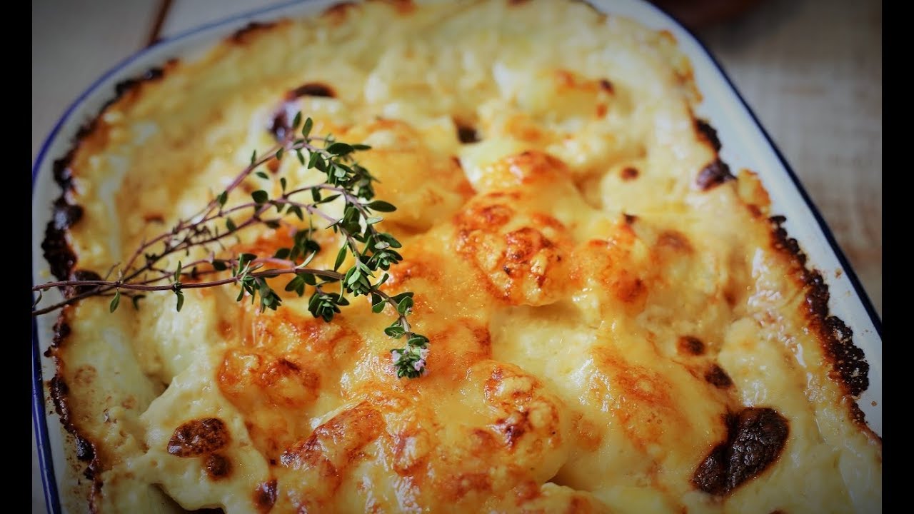 this version of the potato gratin with cheesew is a savoyard (from the French the savoie region) style of gratin of potatoes that can be done in two ways, one with the milk an cream but you can also replace that mix with just vegetable or chicken stock and use it to cook the potaotes in the oven, that makes for a lighter version.