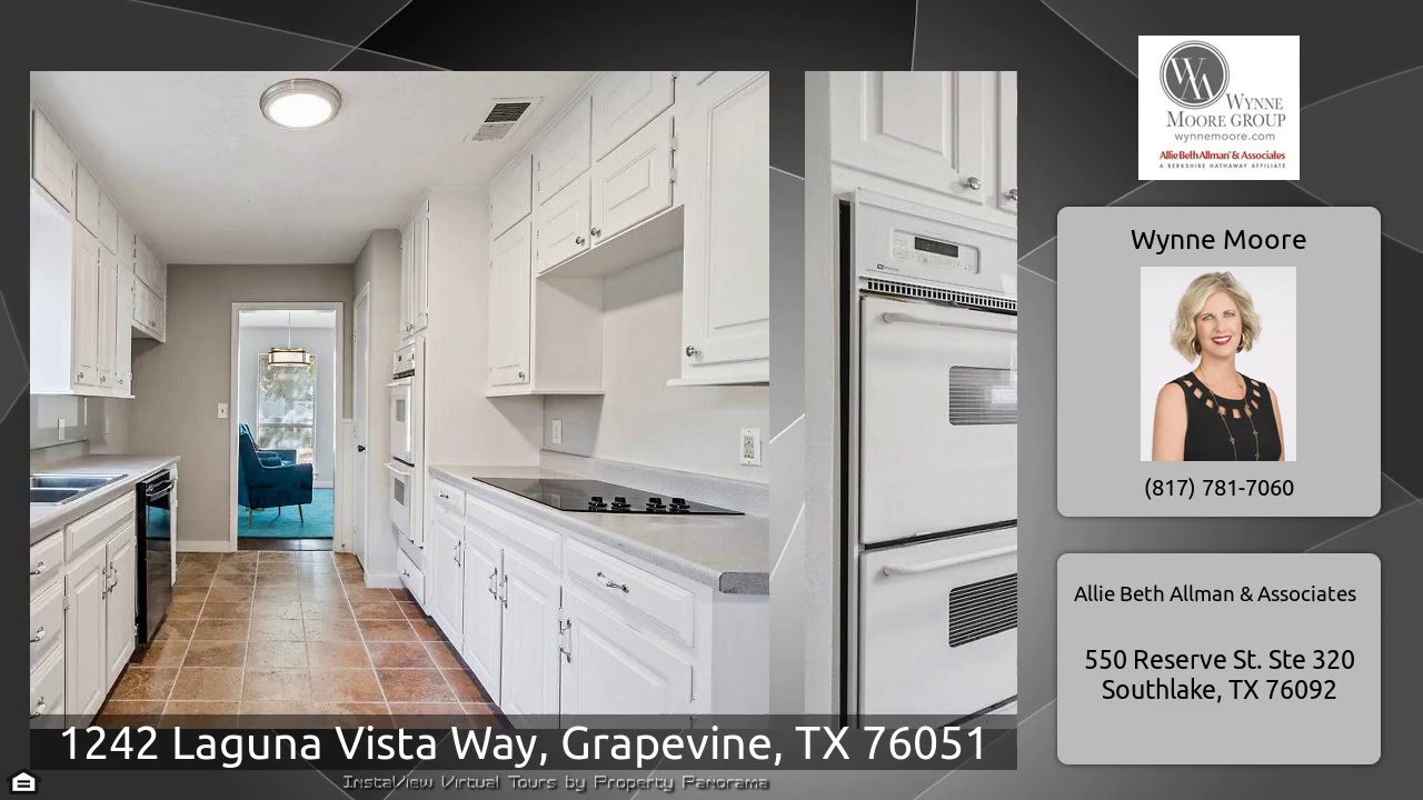 The Virtual Tour for the property at 1242 Laguna Vista Way, Grapevine, TX 76051 listed for $350,000: Other homes for sale by Wynne Moore of Allie Beth Allman & Associates: Fantastic location near Oak Grove Park and Grapevine Lake. Spacious one-story home with mature trees, shaded yard, curved driveway, and many updates. The entryway leads to a freshly painted formal living and dining room. A bright and open kitchen is accented with white cabinets and a cozy breakfast nook. The main living area has vaulted ceilings, an aesthetic fireplace, and double French doors that open to a bright sun- …