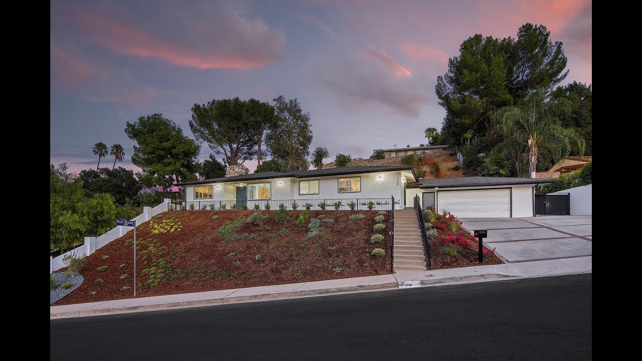 Introducing an entirely remodeled home located in the prestigious Royal Woods neighborhood in the hills of Sherman Oaks with stunning city and mountain views from nearly every room. Enter to find an open-concept floor plan with natural light pouring throughout. The living room has a fireplace, a large glass slider that leads out to the wrap-around backyard with 180 degree views of the Valley and a set of French doors that open to a covered patio area complete with a full outdoor kitchen. The eat-in chef’s kitchen is equipped with quartz counters, high-end appliances and plenty of cabinetry and prep space. Off the kitchen is a dining area that leads into an office/guest room with another slider that opens out to the outdoor terrace. The luxurious primary suite has direct access to the backyard, huge walk-in closet and spa-like bath with dual vanities, walk-in shower and soaking tub. The other two bedrooms are spacious and each have sliders out to the backyard and covered patio. The entertainer’s backyard is super private and offers a huge pool, outdoor shower, multiple seating areas and plenty of room to host family and friends. Offering easy access to shopping, schools and the Westside, welcome home!