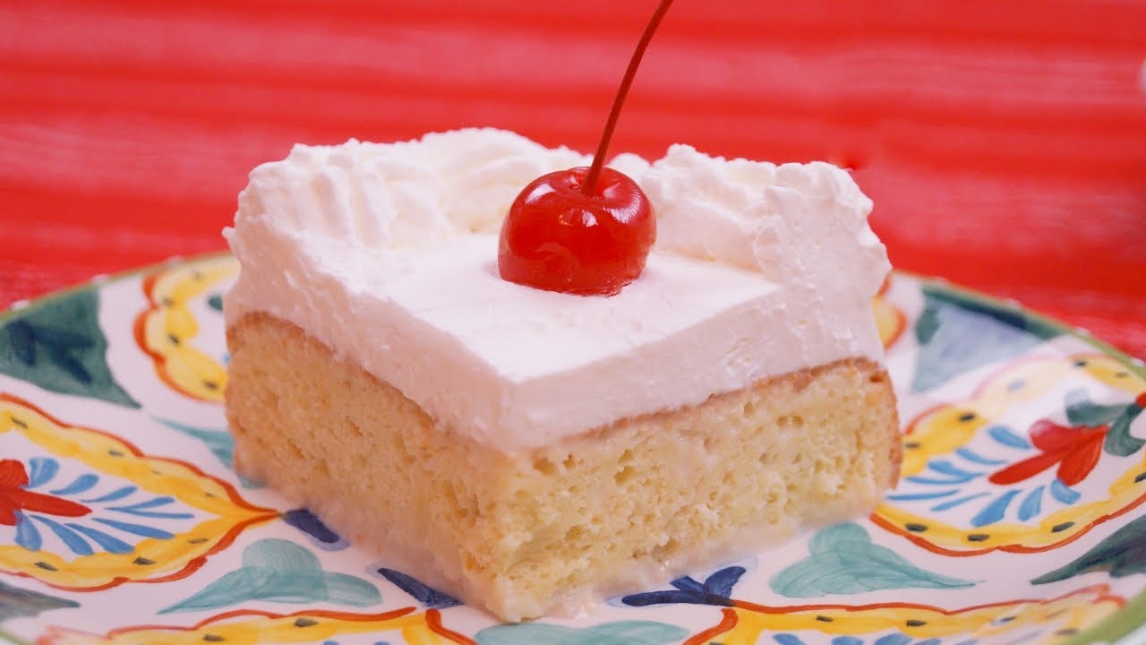 Tres Leches Cake Recipe: From Scratch! Learn how to make Tres Leches Cake! Recipe @ Tres Leches cake is one of the BEST cake recipes! This dessert is a delicious sponge cake soaked in 3 milks: sweetened condensed milk, heavy cream and evaporated milk. The tender, moist Tres Leches cake is frosted with whipped cream frosting or dulce de leche and topped with cherries or filled with strawberries. “Tres Leches Cake”, the name, is Mexican in origin and translates to “Three Milks Cake” in Spanish. Add Tres Leches cake to your Latin dessert recipes along with flan, churros and alfajores. It make the perfect Cinco de Mayo party dessert, but will be a welcome dessert recipe to any holiday menu. I hope you find this Tres Leches Cake recipe easy to follow and as sinfully delicious as I do. Enjoy! Di 😉
