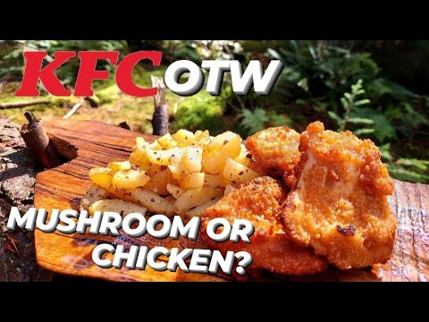 KFCOTW – Kuntucky fried chicken of the woods and French fries cooked Bushcraft Style in the woods opposite where the mushroom was foraged 2 days ago.