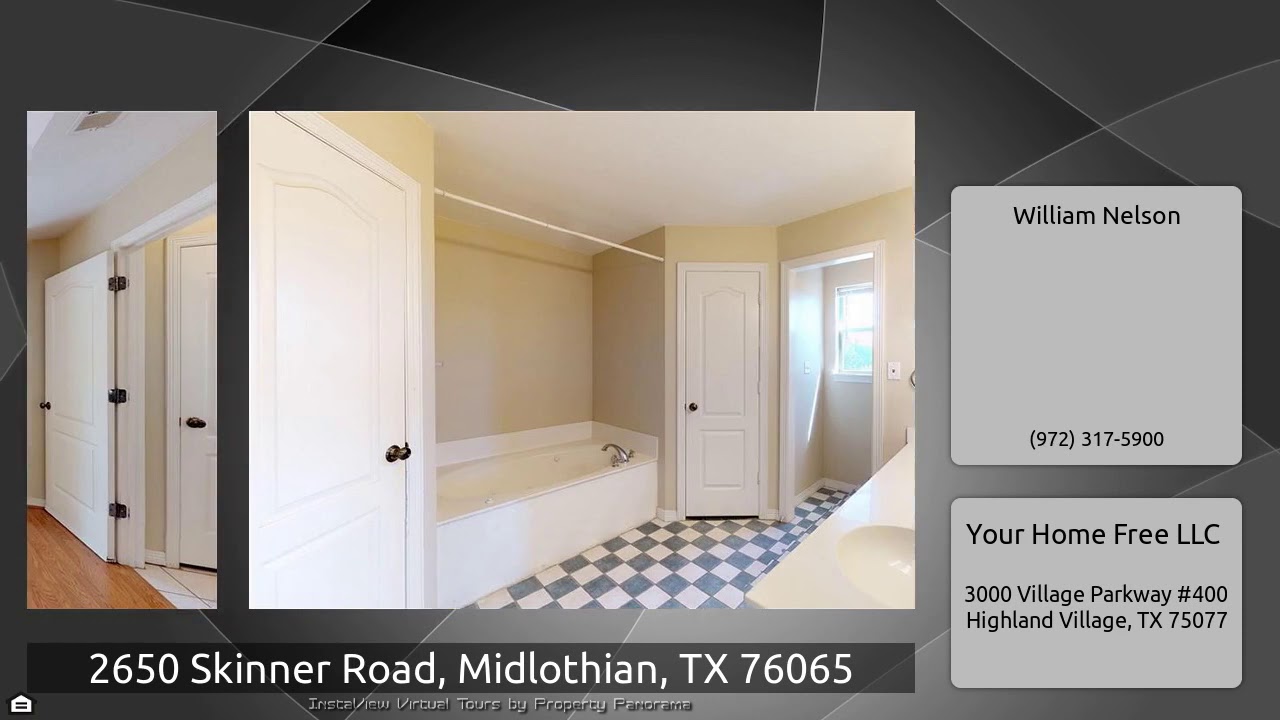 The Virtual Tour for the property at 2650 Skinner Road, Midlothian, TX 76065 listed for $386,800: Other homes for sale by William Nelson of Your Home Free LLC: *SELLER OFFERING UP TO 20K TOWARD UPGRADES WITH ACCEPTABLE OFFER CLOSING BY DEC 15TH!* Enjoy peace & tranquility with this home situated on more than 1 acre! Inside you will find an open layout offering 5 bedrooms, 3.5 baths, a study or formal dining space with French doors & spacious family room! Upgrades include gleaming hardwood-like flooring, today's paint tones, split bedroom plan & 3 car garage! Kitchen overlooking the family …