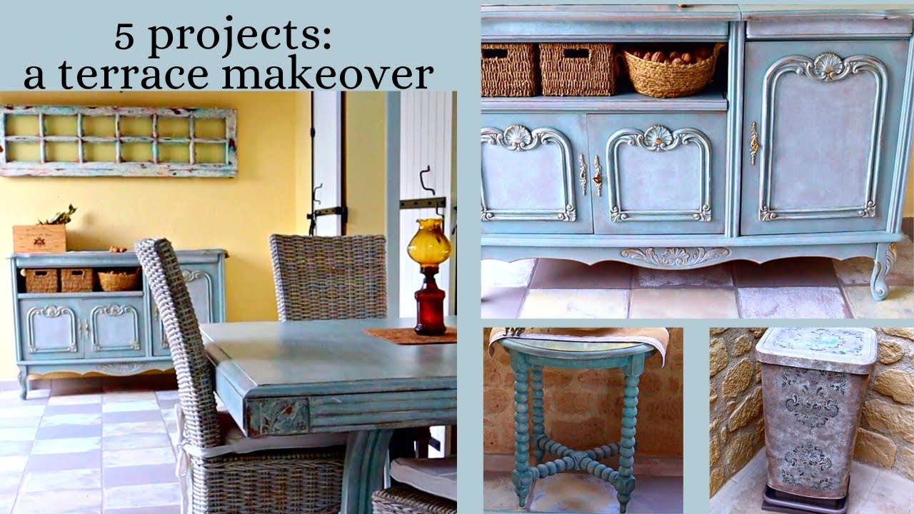 10:35 Project #5. Dust bin makeover. How to create a texture with sawdust and chalk paint. How to apply a stencil and how to white wash with chalk paint: all in one short tutorial.