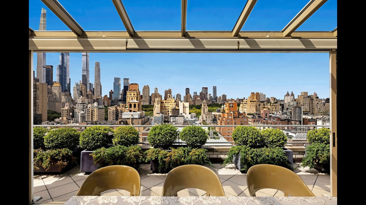 The elevator opens directly into the foyer of this stunning five-bedroom, triplex penthouse and leads into the gorgeous living room with its wall-to-wall windows and three exposures.