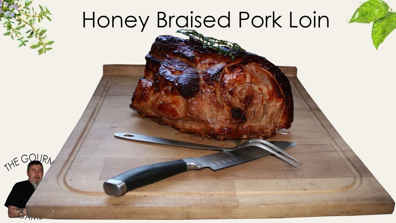 Pork loin roast (250gr per person), 200gr honey, 200ml olive oil, 50ml Cognac or Armagnac, 3 to 4 tbsp coarse sea salt, ½ bunch of thyme, A few bay leaves, 1 garlic bulb, Pepper (optional)