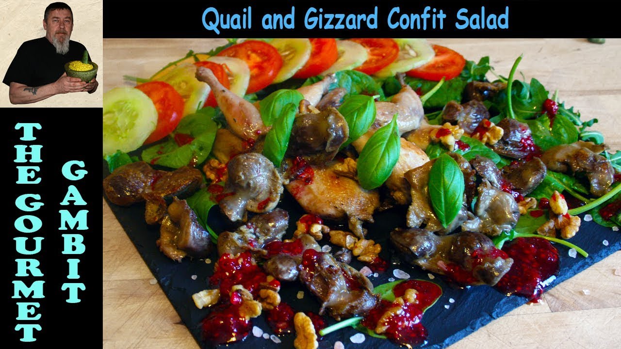 Quail and Gizzard Confit Salad with Raspberries Dressing