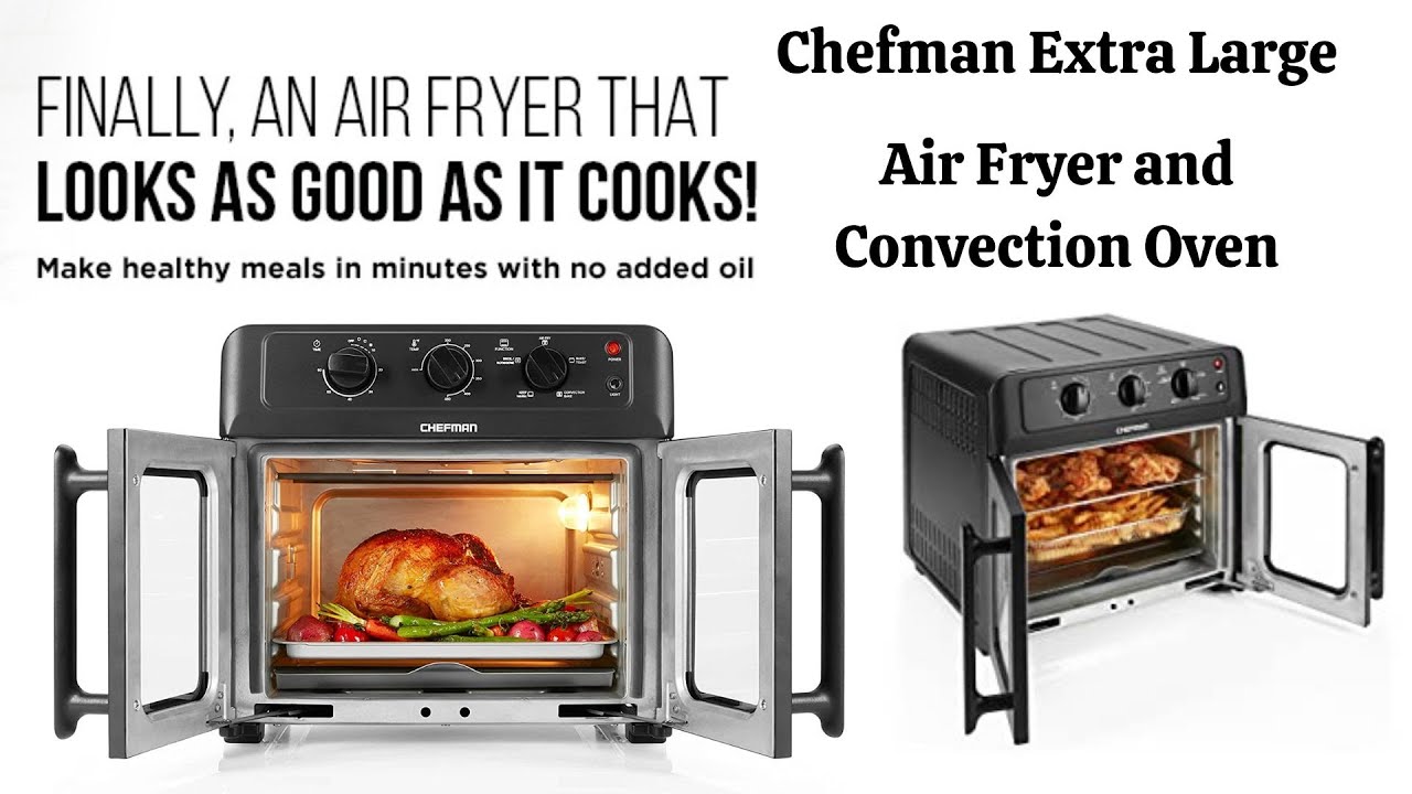 Chefman Extra Large Air Fryer and Convection Oven with French Doors and Rotisserie Spit, The Easiest Way to Cook Oil-Free, Double Wide Glass Windows Open for Convenient Access and Viewing, 24.5 Liters