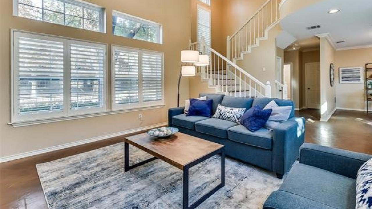 Elegant 3BR-2.5Bath-2Story Half Duplex in highly sought after Holland-Keller neighborhood. Flourish in stylish details w a posh interior in this home. High ceiling living area w abundant lighting, plantation shutters, wood-burning FP & concrete floors throughout 1st level. Chic w rustic vibe dining room glides smoothly to Kitchen w granite counter, tile backsplash, SS appliances, Bfast bar & ample cabinetry. En-suite master features french doors that open to balcony overlooking a Romeo & Juliet serene courtyard w open patio & master bath boast w walk-in glass shower, sitting area, his&her vanities & capacious WIC. Full-size laundry room, Attached two car garage & two-car driveway & many more. Don’t miss out!!!