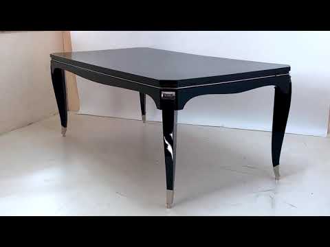 Dining table by Maurice Rinck High gloss black piano lacquer Nickel-plated metal applications Extendable on both sides by 2x 40 cmOriginal Art Deco, France 1930sDimensions: Width: 200 cm Height: 78 cm Depth: 99 cm Width, extended: 280 cm. ArtblackCuisineDecoDiningEXTENSIONSFranceFrenchfrench cuisineFrench diningFUR0671lacquerMauriceRincktableVideoVlogYouTube