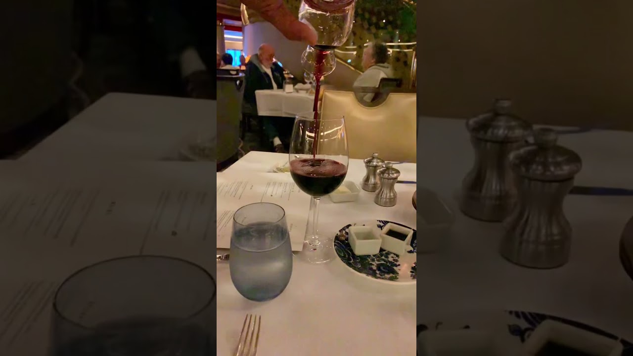 We love wine with dinner every night on the cruise. It is so cool how they bring the wine in a little carafe to give a perfect pour. Showing this in slow motion makes it even more delicious.