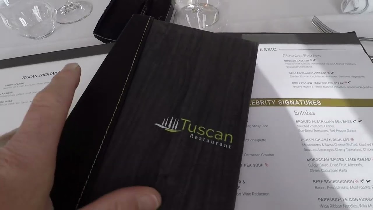 Tuscan Restaurant on the Celebrity Beyond Edge-Class ship. Showing the current options on the Menu for the European cruise 2022. @amiddleagedadventure