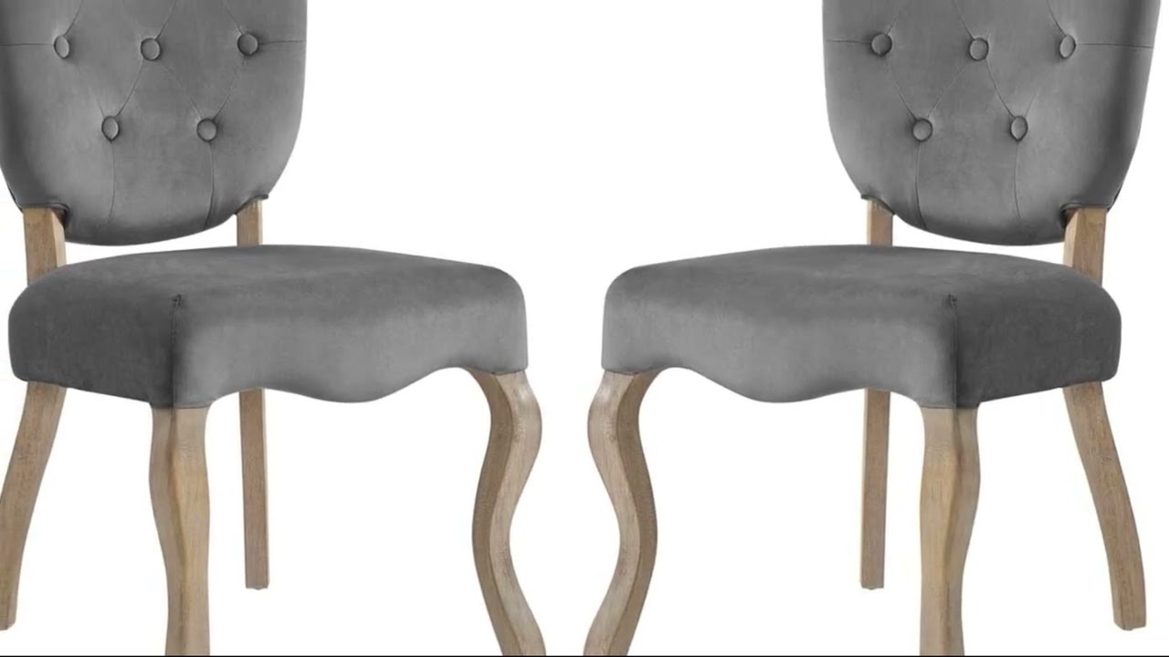 Modway Array French Vintage Tufted Performance Velvet Two Dining Chairs in Gray