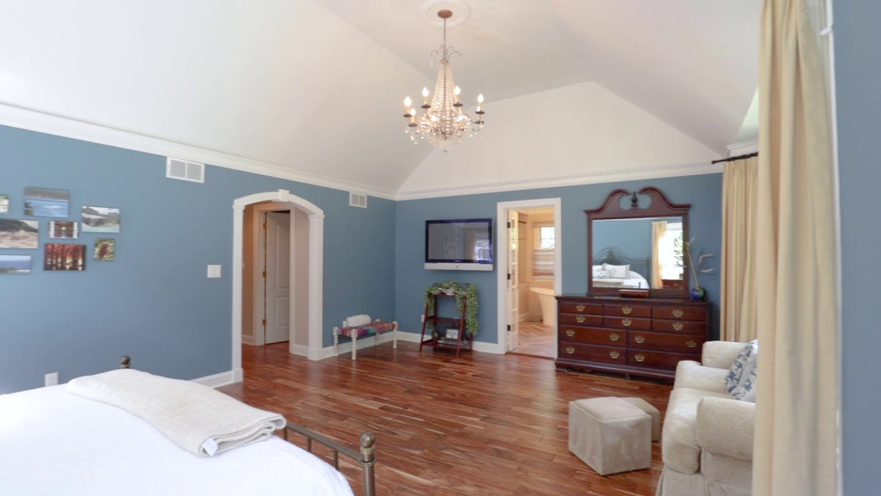 – Renovated Master Suite offers vaulted ceilings, double walk-in closets, and en-suite Master bathroom with heated floors, soaking tub, and double sinks