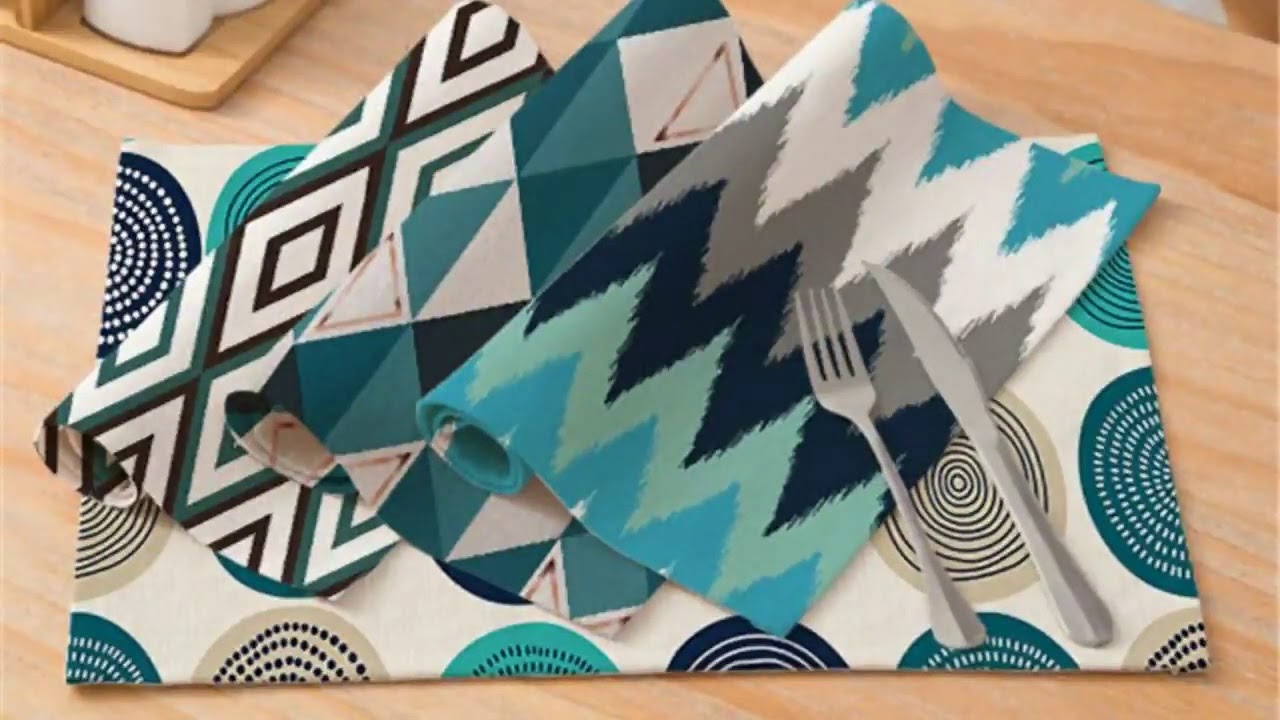 #TTLIFE Blue Geometric Pattern Table Placemat Pattern mat Coasters Cotton-linen Coasters Placemat for Dining Table accessories
