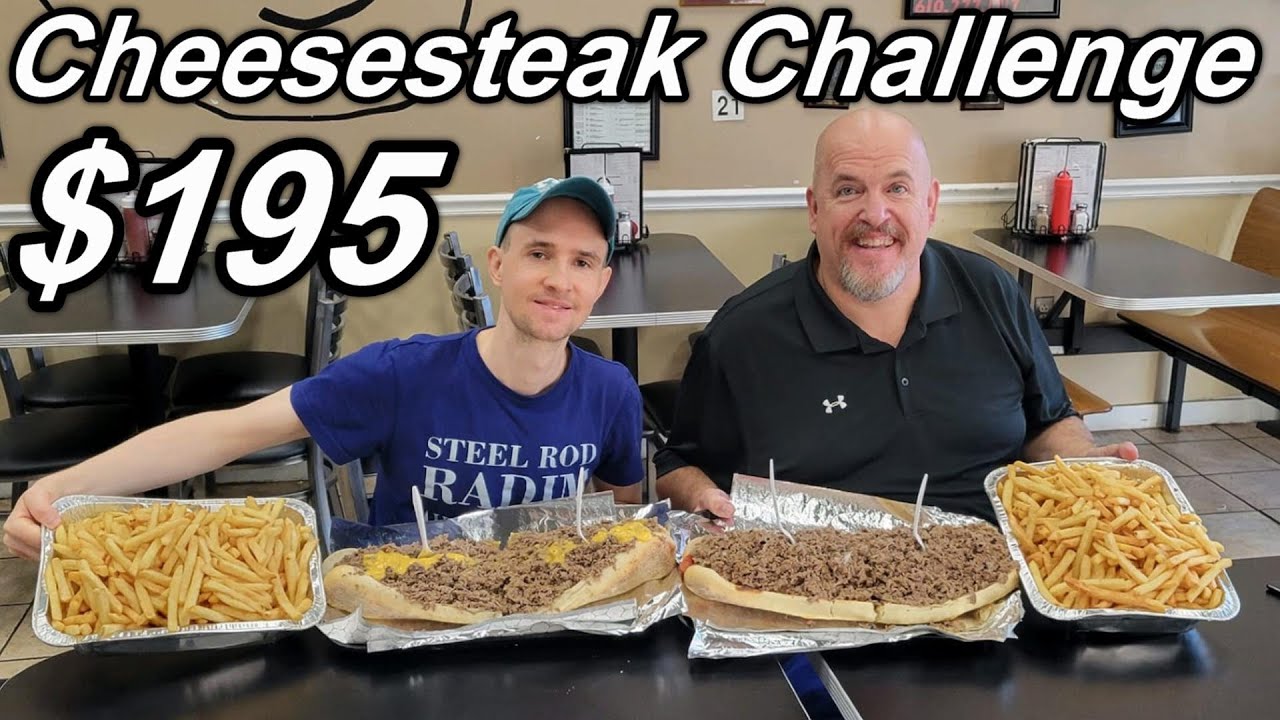 This is actually the 3rd time I have tried this challenge. First time was over 10 years ago. Each time the food (not including the drink) weighed 8.5 lbs. They use the same sized tray for the fries the entire time. The fries weighed 3.5 lbs. It is impossible to get 5 lbs of fries in that tray. Can’t happen, won’t happen, never happened. As for the cheesesteak, the challenge roll is the same one they sell all day long in the store. It is 20″ long so it isn’t even two feet. You can only put so much meat on it. Mine was a little heavier than Radim’s as I had the pepperoni but they were both 5 lbs. I’ll say it one last time, this is an 8.5 lbs of food challenge no matter what you read anywhere else on the internet. If you read it is a 6 lb challenge, that info is at least 10 years old or they got ripped off 2.5 lbs of food LOL. If you read it is more than 8.5, lets say over 9 to be safe, then that is just not accurate and I use those words to be polite. Pudge’s pre sorts their fries and they are individually bagged. In the challenge they use 5 bags. Radim and I weighed one bag and it was 12.5 ounces pre cooking. That comes to 3.9 lbs pre cooked or 3.5 lbs afterwards.
