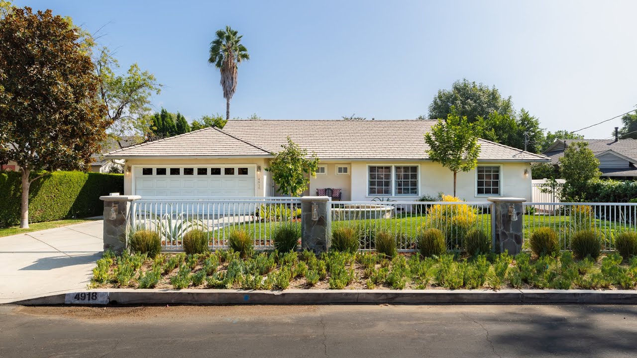 Stunning single level traditional home situated on a quiet street in Sherman Oaks. This home has been tastefully updated with chic detailing and high-end finishes throughout. The open concept main living area includes a spacious family room with a sleek fireplace, intimate dining room and eat-in chef’s kitchen which features top-of-the-line appliances, a large center island and wine refrigerator. The master suite has a walk-in closet with built-in vanity, door that opens to the backyard patio and a master bath that boasts dual vanities and a gorgeous soaking tub surrounded by windows. Additionally there are three bedrooms, an office/den with french doors that can easily become the fifth bedroom and two full bathrooms. In the hallway you will find a laundry closet and cozy built-in reading nook overlooking the backyard. The sizable 10,000+ square foot lot provides plenty of space to host large gatherings in the resort style backyard. It features a sparkling pool/spa with waterfall feature, mature landscaping and an expansive stone patio, the perfect spot to enjoy al-fresco dining. Additional amenities include a gated front yard and two car garage.