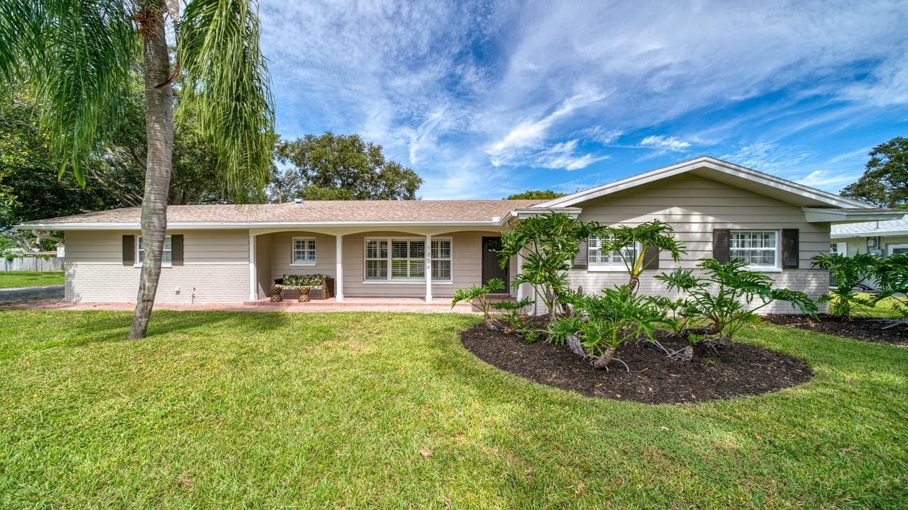 See the Property Website! :: Martha Thorn – The Thorn Collection – Coldwell Banker – 727-432-9019 :: Completely renovated and move-in ready 4/2 Clearwater pool home is ideally located and has a wonderful open floor plan. Nicely situated on a corner lot, the pavered walkway and welcoming front porch, shaded by a beautiful magnolia tree, lead to a spacious and bright interior. The white eat-in kitchen has solid surface counters, stainless steel appliances and a breakfast bar; and the dining room/living room opens to a huge family room/game room with vaulted ceilings. French doors lead to the beautiful and private enclosed pool which the perfect spot for bug-free entertaining or relaxing. The primary bedroom has an ensuite bath with beautiful tile work and a walk-in shower and the guest bedrooms share a renovated hall bath that has subway tile and a tub/shower combo. Neutral tones throughout and designer finishes such as plantation shutters and crown molding make for easy decorating. Conveniently located close to shopping, restaurants, airports and sparkling beaches this one won?t last.