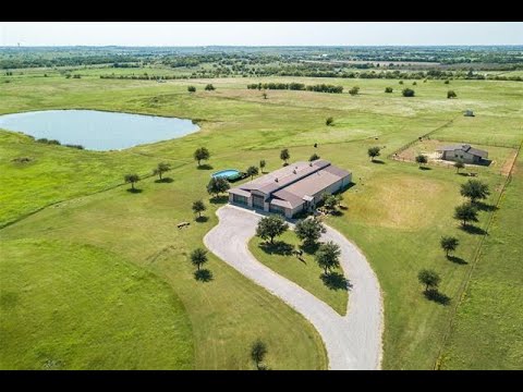 53 Acres of Sportsman and Equestrian Paradise w a Custom Barndominium, 4-stall Barn & stocked 3 Acre pond. Beautifully fully furnished home features French Oak wood floors throughout the spacious open floorplan which is perfect for entertaining. Gourmet kitchen w double oven, gas cooktop, granite counters, breakfast bar and huge walk-in pantry. Master Suite w sitting area and spa-like master bath w high-end finishes. Sunroom along back with multiple sliding glass doors offers incredible views of Denton to the south and evening sunsets. 7 car garage, workshop and storm shelter. Just minutes from shopping & services off 35 & 380 in Denton. Currently Ag exempt