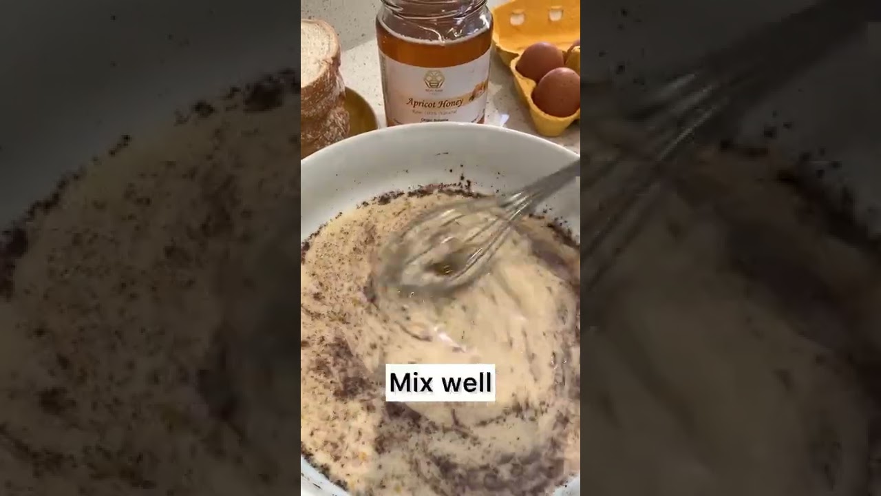 Step one: Whisk together the eggs, milk, cinnamon, nutmeg and honey. Soak the bread in the mixture, carefully turn it over, and soak the other side.