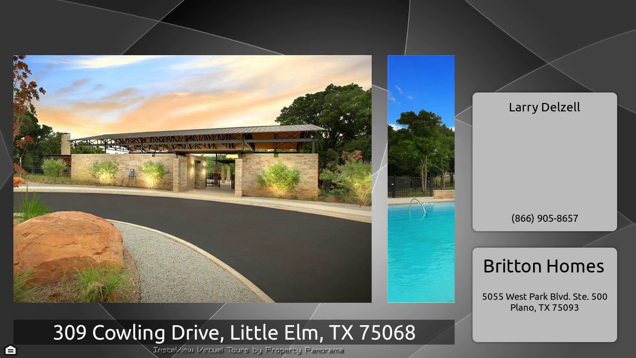 The Virtual Tour for the property at 309 Cowling Drive, Little Elm, TX 75068 listed for $399,900: Other homes for sale by Larry Delzell of Britton Homes: PERRY HOMES NEW CONSTRUCTION! Library with French doors set at entry. Extended entry with 12-foot coffered ceiling leads to open family room with wall of windows. Formal dining room. Game room with double doors and a walk-in storage closet. Family room flows into kitchen and morning area. Kitchen features island with built-in seating space. Spacious master suite. Master bath includes garden tub, separate glass-enclosed shower and dual …