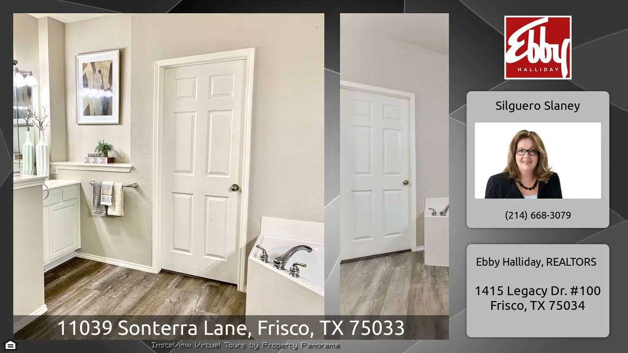 The Virtual Tour for the property at 11039 Sonterra Lane, Frisco, TX 75033 listed for $649,990: Other homes for sale by Silguero Slaney of Ebby Halliday, REALTORS: West Frisco Golf Community~ zoned in Frisco's WAKELAND High. Spacious 5 Bedroom,3 Baths, Study and Gameroom. Enter the expansive Foyer with recently installed Lux Vinyl flooring, high ceilings, plenty of windows. Front Study has double French doors. Formal Dining is private. Gourmet Kitchen has Stainless appliances, Kit fridge stays, gas c-top and amazing cabinets storage. The main Living area has two-story ceilings, picture …