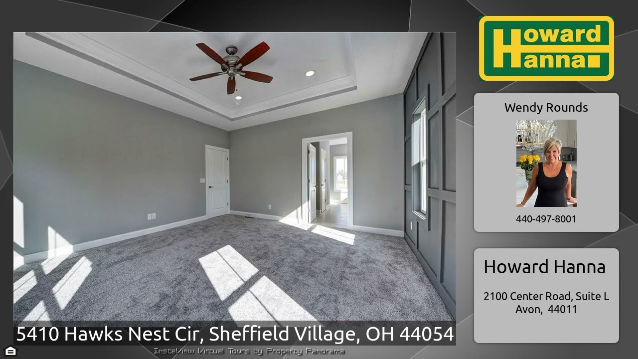 The Virtual Tour for the property at 5410 Hawks Nest Cir, Sheffield Village, OH 44054 listed for $515,000: Other homes for sale by Wendy Rounds of Howard Hanna: Spectacular Custom-Built Home in The Preserve at French Creek. This 3-bedroom, 3-Full bath, Craftsman Exterior Ranch w/ Exceptional detail, Craftsmanship, Quality upgrades along with Stunning curb appeal. Foyer greets you with 9’ Ceilings, Luxurious Trim Package & LVT flooring throughout. This open floorplan is highly desirable with the 11’ ceilings in the Great rm. Gourmet Kitchen dressed w/ 42” cabinet’s, Granite …