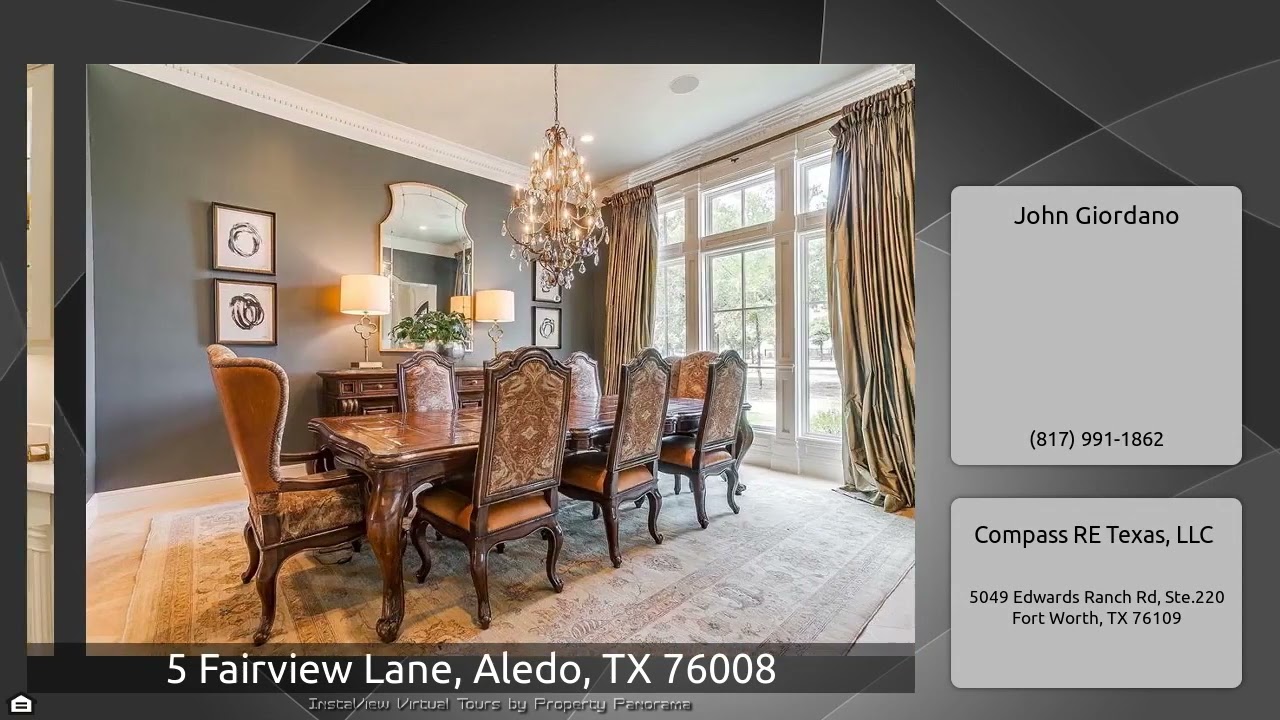 The Virtual Tour for the property at 5 Fairview Lane, Aledo, TX 76008 listed for $2,250,000: Other homes for sale by John Giordano of Compass RE Texas, LLC: Located in one of the most highly sought-after neighborhoods of Aledo ISD, with excellent proximity to Aledo, this exceptional French country estate is situated on just over an acre of gorgeous hillside with panoramic views. The sophisticated interior décor is complimented by soaring ceilings, exposed wood beams and gorgeous oak hardwood and travertine floors. The fabulous gourmet kitchen features honed white Calcutta Danby marble …